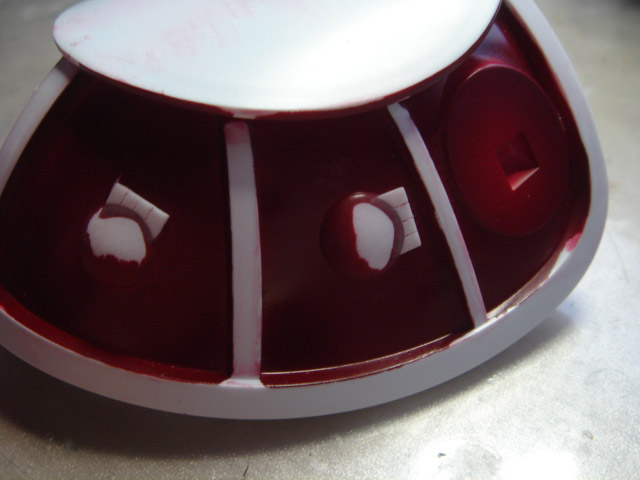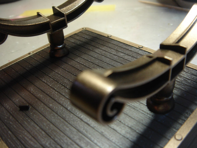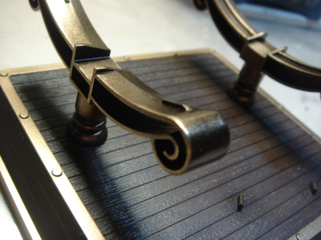 サニー号の全面部分・・・キットは○のみだったのですが資料をみると違ったのでプラ板にて加工しました。 ちなみに塗装後、金属色部分はつや有りクリアを吹いてます。
